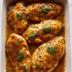 - Arrange and Sauce Chicken: Place the seasoned chicken breasts in a single layer in the prepared baking dish. Pour the sauce over the chicken breasts and spread it evenly to ensure every piece is coated.