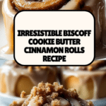 Delight in the soft, sweet indulgence of Biscoff Cookie Butter Cinnamon Rolls, featuring a fluffy yeast dough rolled with creamy Biscoff cookie butter and a touch of cinnamon, baked to golden perfection, then glazed with a simple powdered sugar and milk drizzle. Perfect for breakfast or a cozy dessert treat.