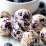 Keywords: blueberry cheesecake, protein bites, no-bake snack, healthy snack, post-workout snack, protein-rich, gluten free, low sugar, easy snack, portable snack