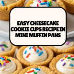 Cheesecake Cookie Cups combine the best of both worlds – soft, baked chocolate chip cookie shells filled with a smooth, creamy cheesecake filling. These delightful bite-sized treats are perfect for parties, special occasions, or whenever you want an indulgent dessert that’s easy to make and utterly delicious.