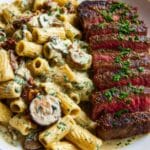 Cheesy Cajun Garlic Butter Steak with Creamy Rigatoni Recipe
