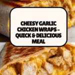 Cheesy Garlic Chicken Wraps are a delicious and comforting meal perfect for a quick lunch or dinner. Filled with tender chicken, creamy cheese, and flavorful garlic, these wraps come together easily and satisfy every cheesy craving.