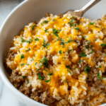 This Cheesy Ground Beef and Rice Casserole is a comforting and satisfying one-dish meal that’s perfect for busy weeknights. Packed with savory ground beef, creamy sauce, and melted cheddar cheese, it brings warmth and flavor to your table with minimal effort.