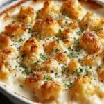 Chicken Alfredo Tater Tot Casserole is a comforting and hearty dish that combines creamy Alfredo sauce, tender shredded chicken, and crispy tater tots, all baked to golden perfection. This casserole is a family favorite, perfect for busy weeknights or gatherings.