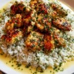 This Chicken Scampi with Creamy Garlic Parmesan Rice is a delightful one-pan meal featuring tender, seared chicken chunks coated in a garlicky, buttery Parmesan sauce served over rich, creamy rice cooked with chicken broth and milk. Perfect for a comforting dinner, this recipe combines bold flavors of garlic, red pepper flakes, and fresh parsley to create a savory dish that’s both satisfying and easy to prepare.