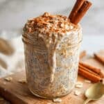 This Cinnamon Roll Overnight Oats recipe is a delicious and convenient make-ahead breakfast that combines creamy Greek yogurt, chia seeds, and oats flavored with cinnamon and brown sugar. Topped with a sweet vanilla glaze, it offers the comforting flavors of a cinnamon roll in a healthy, satisfying bowl that’s perfect for busy mornings.