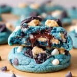 These Cookie Monster Cookies are irresistibly blue and loaded with a variety of chocolate chips and cookie chunks, featuring a gooey milk chocolate center. Inspired by a viral TikTok sensation, this recipe offers a fun, delicious twist with vibrant blue dough and an indulgent mix of semisweet, white, and milk chocolates combined with chopped Oreos and crispy chocolate chip cookies for added texture.