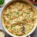 - Thicken the mixture: Continue to simmer the pot pie orzo until the sauce thickens and becomes creamy, usually a few more minutes.
