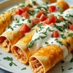 These crispy baked cream cheese chicken taquitos combine tender shredded chicken with creamy cheese and bold spices, wrapped in golden tortillas. They’re a flavorful and healthier alternative to fried taquitos, perfect for quick weeknight dinners or crowd-pleasing appetizers.
