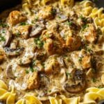 Keywords: Chicken Stroganoff, creamy chicken recipe, comfort food, easy dinner, mushroom sauce, stovetop chicken dish
