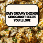 This creamy chicken stroganoff is a comforting dish that combines tender chicken, sautéed mushrooms, and a rich, velvety sauce. Perfect for a cozy dinner, it’s easy to prepare and pairs wonderfully with mashed potatoes or egg noodles.