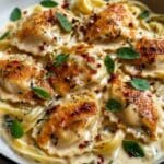 This Creamy Italian Chicken Pasta is a rich and satisfying dish combining tender seared chicken breasts with a luscious Parmesan cream sauce tossed with fettuccine. Flavored with garlic, Italian seasoning, and a hint of crushed red pepper flakes, it’s a perfect weeknight meal or dinner party option that is both comforting and flavorful.