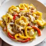 Keywords: Crock Pot, Cheesesteak, Tortellini, Slow Cooker Recipe, Comfort Food, Beef, Italian