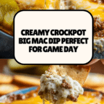 This Crockpot Big Mac Dip is a creamy, cheesy, and savory appetizer inspired by the classic Big Mac burger flavors. Combining ground beef, cheddar and Velveeta cheeses, tangy pickles, and classic condiments like ketchup, mustard, and mayo, this warm dip is perfect for parties, game days, or casual snacking. Slow-cooked to meld the rich flavors and served directly from the crockpot, it pairs wonderfully with chips, slider buns, or pickle slices.