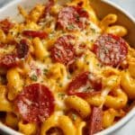 This Crockpot Pizza Pasta is a comforting one-pot meal combining lean ground beef, rotini pasta, marinara sauce, and a blend of mozzarella and cheddar cheeses. Simmered slowly with Italian seasoning and turkey pepperoni, it offers a hands-off way to enjoy pizza-inspired flavors in a creamy pasta dish perfect for busy weeknights.
