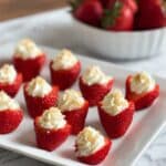 Keywords: Deviled strawberries, strawberry dessert, cream cheese filling, holiday dessert, party appetizers, no-bake dessert, fruity treats