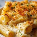 - Add Cheese & Breadcrumb Topping: After 30 minutes, carefully remove the foil and stir the casserole to distribute ingredients evenly. The pasta will still be firm and some liquid might remain, which is normal at this stage. Evenly sprinkle shredded mozzarella cheese, Panko breadcrumbs, and grated Parmesan cheese over the top.