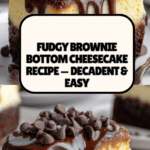 This Fudgy Brownie Bottom Cheesecake combines the rich, dense texture of a fudgy brownie with the creamy smoothness of classic cheesecake. Featuring a decadent brownie base topped with a luscious cream cheese filling, this dessert is perfect for chocolate lovers looking for a delightful twist on traditional cheesecake recipes. It’s baked in a single pan for ease and chilled to achieve the perfect texture.