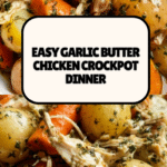 This Garlic Butter Chicken Crockpot Recipe is a comforting and hearty one-pot meal featuring tender chicken breasts or thighs slow-cooked with baby red potatoes, carrots, and a rich garlic butter sauce. Perfect for busy days, this easy recipe allows you to set and forget while enjoying a flavorful, soul-warming dinner.