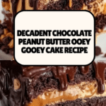 This Heavenly Chocolate Peanut Butter Ooey Gooey Cake is an indulgent dessert combining moist chocolate cake layers with a creamy peanut butter and cream cheese filling, topped with a rich dark chocolate ganache and crunchy crushed peanuts. Perfect for chocolate and peanut butter lovers seeking a decadent treat.