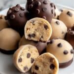 Keywords: no-bake, cookie dough bites, chocolate coated, dessert, snack, vegan option, easy treat