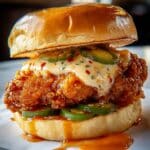 This Jalapeno Honey Drenched Crispy Fried Chicken Sandwich combines juicy, flavorful fried chicken with a sweet and spicy honey drizzle. It’s perfect for those who love a little kick balanced with sweetness in their sandwiches.
