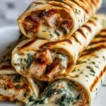 Delicious and satisfying Low Carb Cheesy Garlic Chicken Wraps featuring tender shredded rotisserie chicken, a creamy blend of cheeses, and fresh garlic wrapped in low-carb tortillas. These wraps are quick to prepare, perfect for a low-carb or keto lifestyle, and offer a comforting combination of gooey melted cheese and savory garlic goodness.