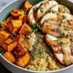 Maple Dijon Chicken & Sweet Potato Bowls combine tender, flavorful chicken with caramelized sweet potatoes and wholesome grains for a comforting meal. This dish balances sweet and tangy flavors that will satisfy your appetite and warm your soul.