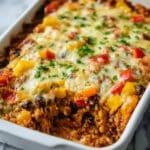 This Mexican Spaghetti Squash Casserole is a flavorful and healthy twist on classic comfort food. Packed with seasoned ground turkey, colorful vegetables, and melted cheese, it’s a satisfying meal that’s perfect for weeknight dinners or meal prep.