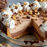 Keywords: No-Bake, Peanut Butter Pie, Cream Cheese Pie, Chocolate Whipped Cream, Easy Dessert, Creamy Pie, American Dessert