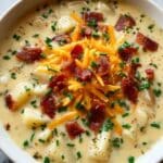 - Serve: Ladle the soup into bowls and garnish with crispy bacon bits, shredded cheese, and chopped green onions if desired. Serve hot.