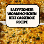 This comforting Pioneer Woman Chicken Rice Casserole combines tender shredded chicken, long-grain rice, creamy soups, and melted cheddar cheese baked to golden perfection. It’s a hearty, family-friendly dish that’s simple to prepare and perfect for weeknight dinners or potlucks.