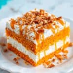 A decadent and moist pumpkin spice cake layered with a creamy, sweetened cream cheese frosting and topped with whipped topping, caramel sauce, and pecans. This ‘Pumpkin Better Than Sex Cake’ is a perfect fall dessert that’s both easy to make and irresistibly delicious.
