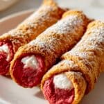 Red Velvet Cannoli combine the classic Italian pastry with the rich, vibrant flavors of red velvet cake. These crispy shells filled with a creamy, tangy cream cheese filling make a stunning dessert that’s perfect for special occasions or anytime you want to impress your guests.
