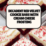 These Red Velvet Cookie Bars combine the rich flavor of red velvet with a soft, chewy texture that’s perfect for sharing. Topped with a creamy and tangy cream cheese frosting, they make a delightful treat for any occasion.