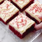 Keywords: red velvet cookie bars, red velvet dessert, cream cheese frosting, easy cookie bars, holiday dessert, red velvet cookies