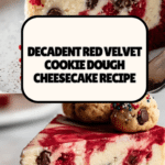 Indulge in the rich, creamy delight of Red Velvet Cookie Dough Cheesecake, a unique dessert that combines a luscious red velvet crust with bite-sized edible cookie dough pieces nestled in cheesecake filling. This show-stopping treat is perfect for special occasions or whenever you crave a decadent sweet.
