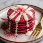 Celebrate Valentine’s Day morning with these delightful red velvet pancakes. They’re fluffy, rich with cocoa, and kissed with a hint of vanilla and buttermilk for extra tenderness. Perfect for a sweet and special breakfast shared with loved ones.