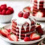 Enjoy a festive twist on classic pancakes with these fluffy Red Velvet Pancakes topped with a luscious cream cheese drizzle. Perfect for a special breakfast or brunch, these pancakes combine cocoa powder and vibrant red food coloring to create a deliciously colorful dish that’s both fun and indulgent.