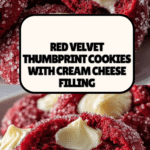 Red Velvet Thumbprint Cookies combine the rich flavors of cocoa and vibrant red food coloring to create an eye-catching treat. Filled with a smooth and creamy vanilla cream cheese center, these cookies are perfect for sharing or special occasions.