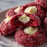 Red Velvet Thumbprint Cookies combine the rich flavors of cocoa and vibrant red food coloring to create an eye-catching treat. Filled with a smooth and creamy vanilla cream cheese center, these cookies are perfect for sharing or special occasions.