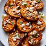These Roasted Sweet Potato Rounds with Honey & Feta are a flavorful and vibrant side dish featuring sweet potatoes coated in a blend of warm spices, honey, and olive oil, then roasted until crispy and golden. Topped with tangy crumbled feta and fresh herbs, this dish offers a perfect balance of sweet, savory, and smoky flavors, ideal for any meal or as a delicious appetizer.