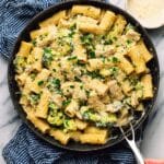 Keywords: rotisserie chicken pasta, broccoli pasta, creamy pasta recipe, easy dinner, quick stovetop meal, chicken penne pasta