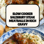 Keywords: Salisbury steak, meatballs, slow cooker, beef meatballs, gravy, comfort food, easy dinner