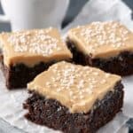 These Salted Caramel Chocolate Sugar Cookie Bars combine rich cocoa flavor with smooth caramel coffee creamer to create a decadent yet easy-to-make dessert. The soft, chocolatey cookie base is topped with luscious salted caramel frosting and a sprinkle of coarse sea salt for the perfect balance of sweet and salty.