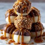 These Salted Caramel Pretzel Cheesecake Balls combine creamy, tangy cheesecake with the perfect balance of salty pretzels and sweet, luscious salted caramel. Coated optionally in rich white or milk chocolate, these bite-sized treats are an irresistible snack or dessert, ideal for parties or indulgent everyday moments.