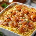 Keywords: shrimp scampi, pasta bake, baked pasta, creamy shrimp pasta, garlic butter shrimp, cheesy pasta casserole, easy dinner, weeknight meal