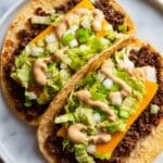 Smash Burger Tacos are best enjoyed fresh, but leftovers can be stored in an airtight container in the refrigerator for up to 2 days. Reheat gently in a skillet or microwave, but note that the tortillas may lose some crispness. Assemble with fresh toppings after reheating for the best texture.
