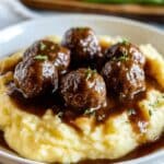 Keywords: slow cooker meatballs, Salisbury steak meatballs, comforting dinner, easy slow cooker recipes, beef meatballs, brown gravy sauce, family meal, freezer-friendly