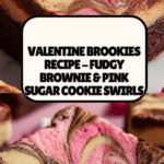 Valentine Brookies are a delightful combination of rich, fudgy brownie layered with vibrant pink sugar cookie dough swirled on top. Perfect for Valentine’s Day or any special occasion, these brookies blend the intense chocolate flavor with the sweet, buttery sugar cookie in a marbled effect that’s both visually stunning and delicious.